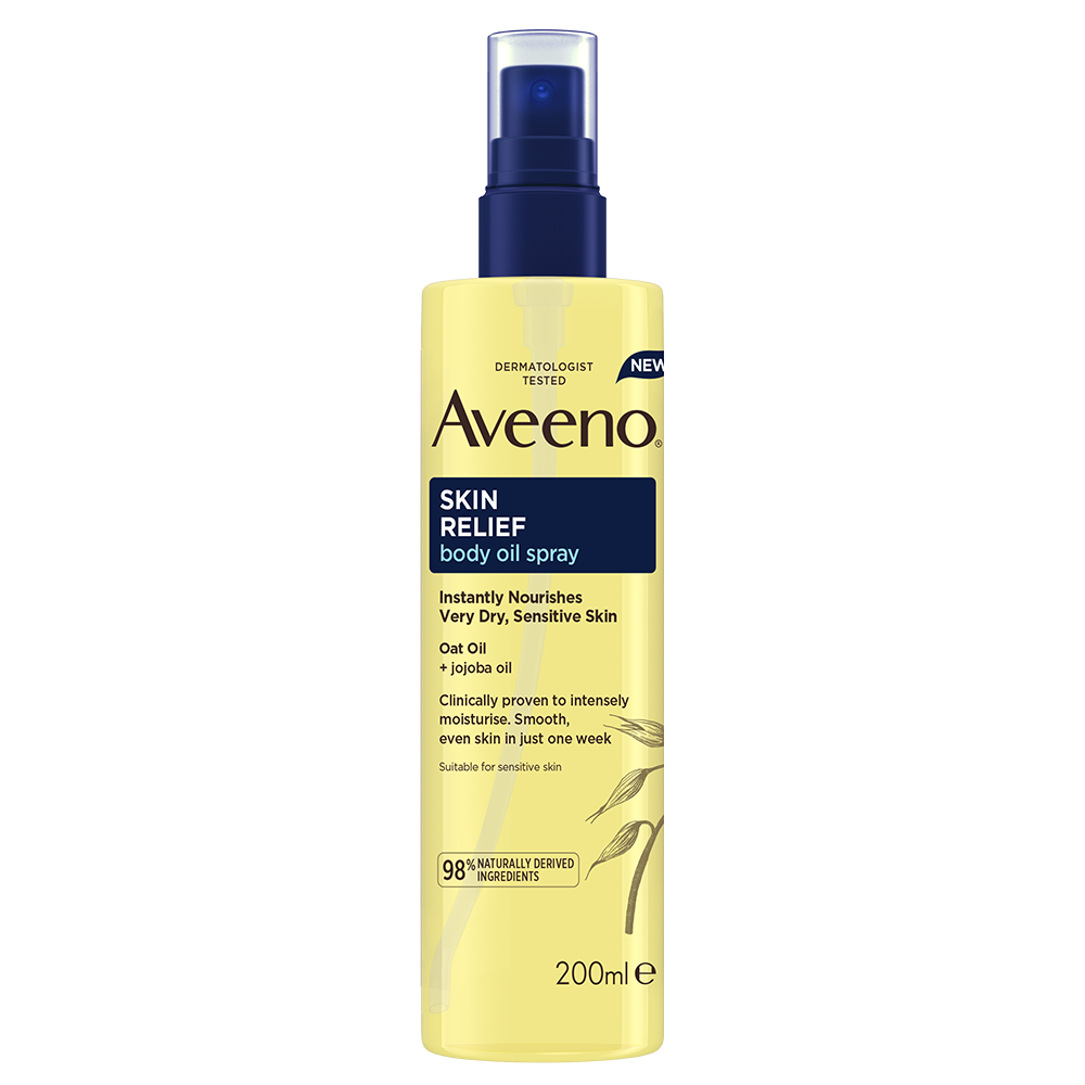 Aveeno Skin Relief Body Oil Spray helps relieve and repair very dry skin from the first application by providing a long-lasting moisturisation . Its unique formula contains oat oil and jojoba oil, which are ingredients rich in lipids and fatty acids that help restore the skin barrier . This body oil is fast absorbing and leaves behind a silky finish .Suitable for very dry, sensitive skin and can be used for a massage .